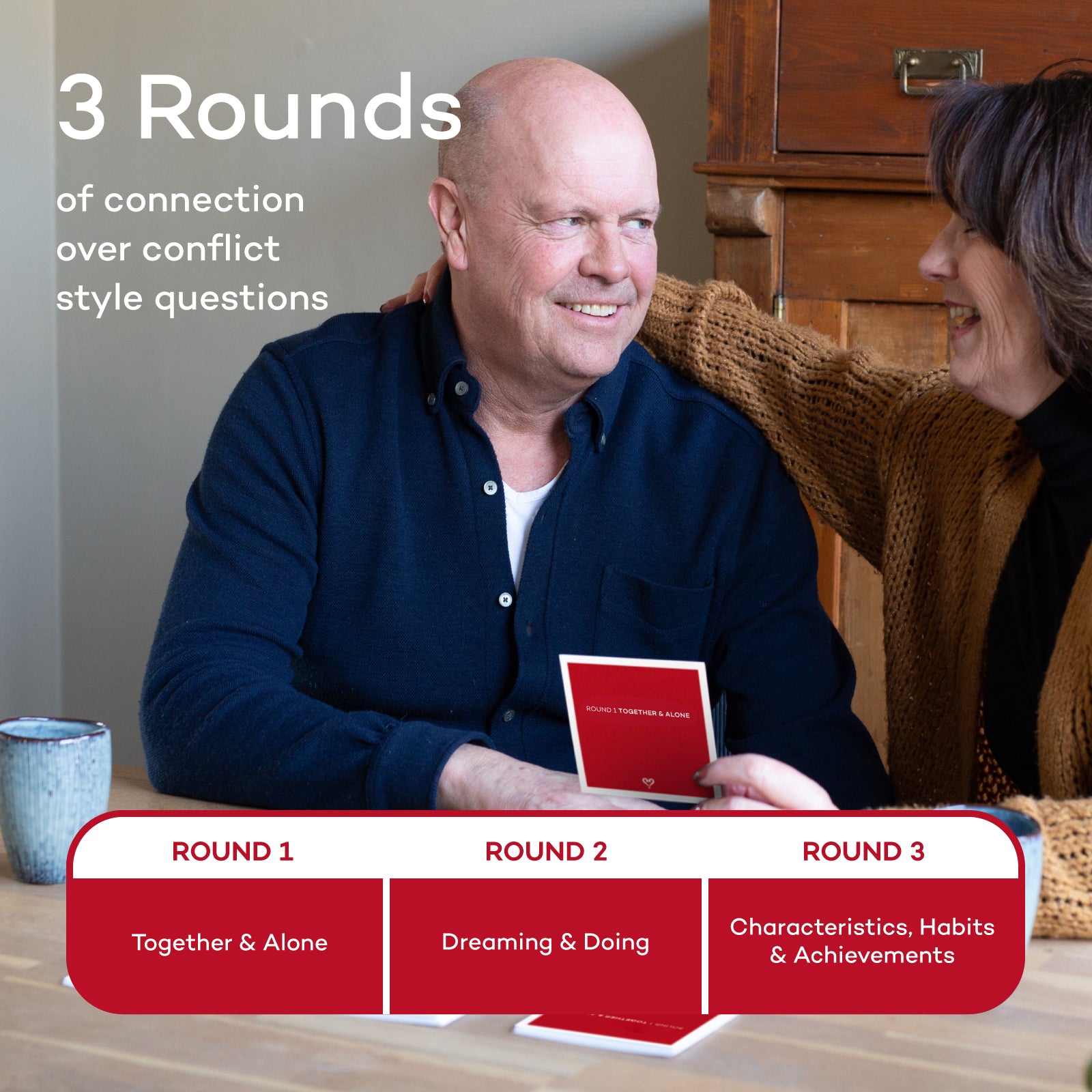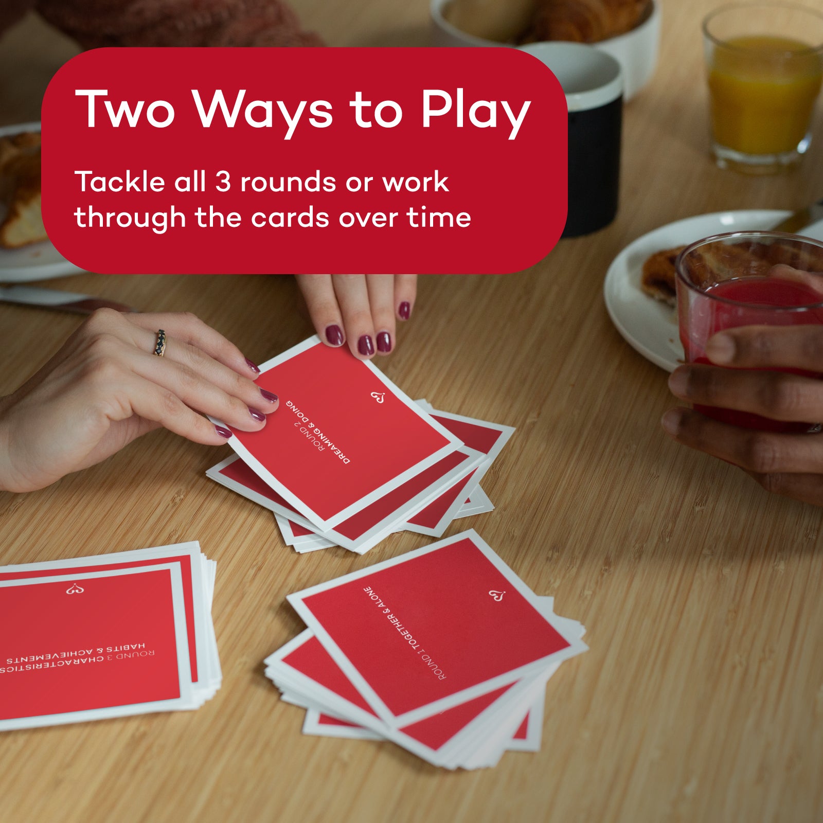 The game contains 46 meaningful questions and fun, simple assignments for more connection and love. It creates stronger and healthier relationships.